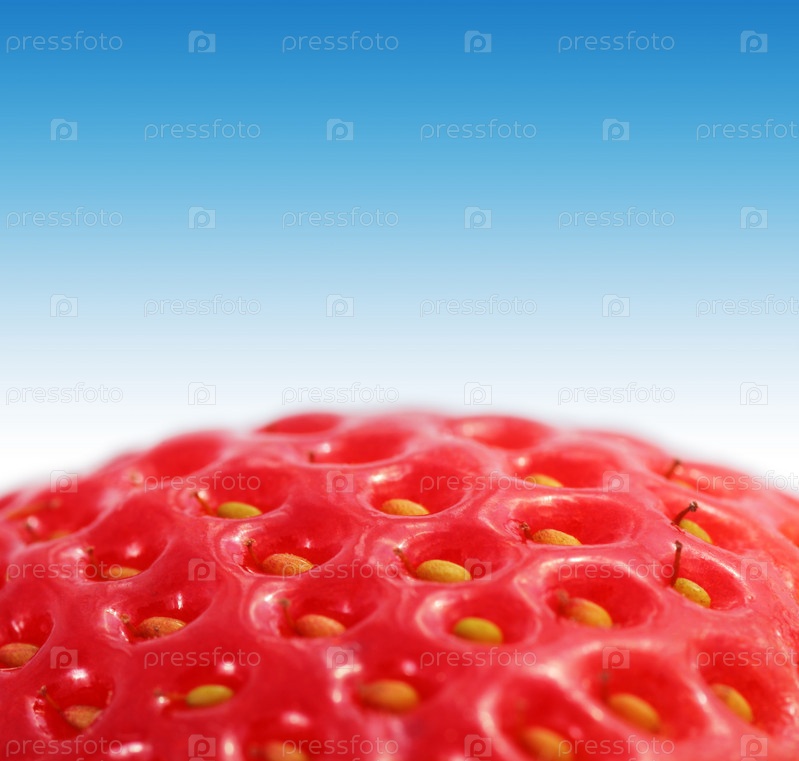 Фрагмент клубники на синем фоне