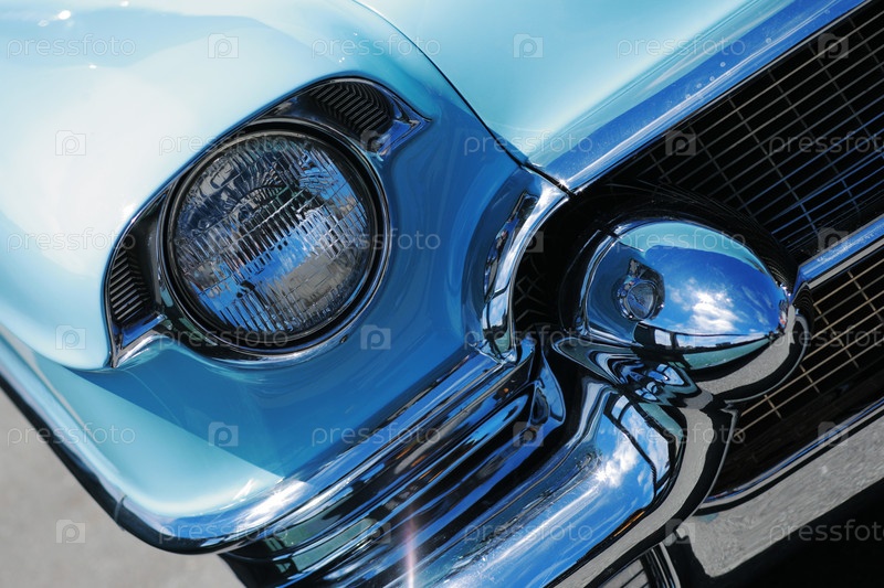 Фрагмент передней части старинного американского автомобиля