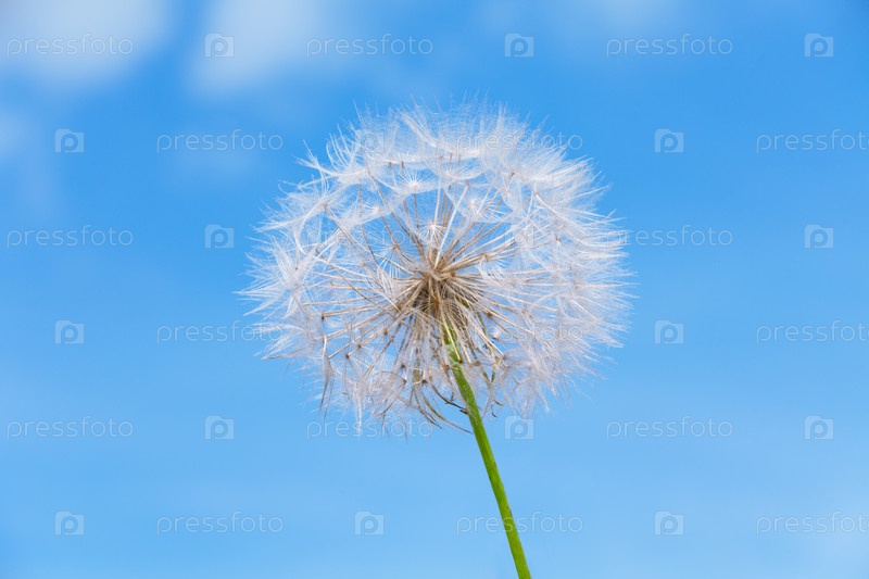Белый одуванчик на фоне голубого неба