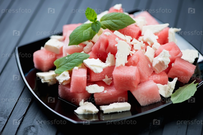 Салат с арбузом, сыром фета и мятой