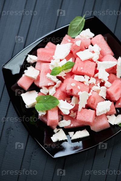 Салат с арбузом, сыром фета и мятой