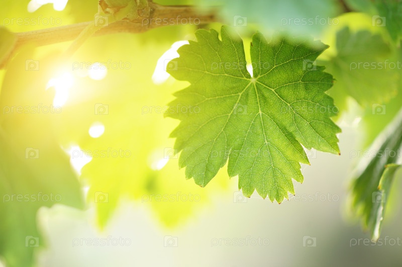 Яркое солнце просвечивает сквозь виноградные листья
