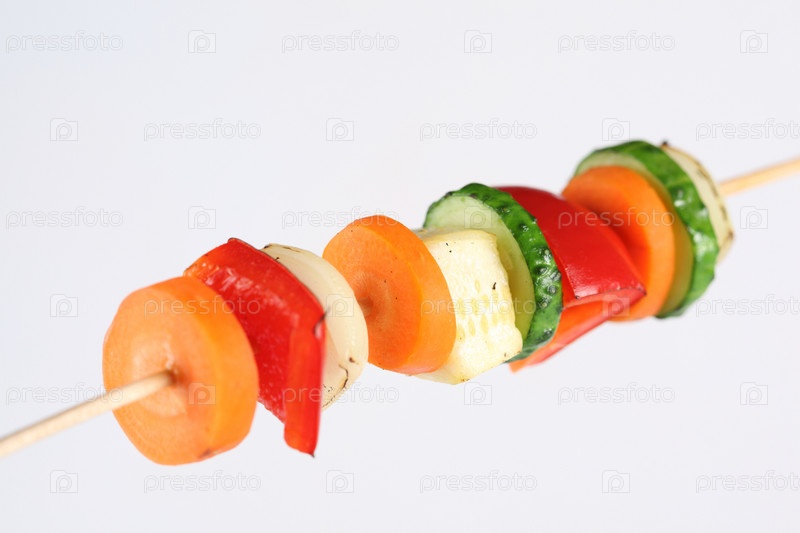 Овощной шашлык на белом фоне