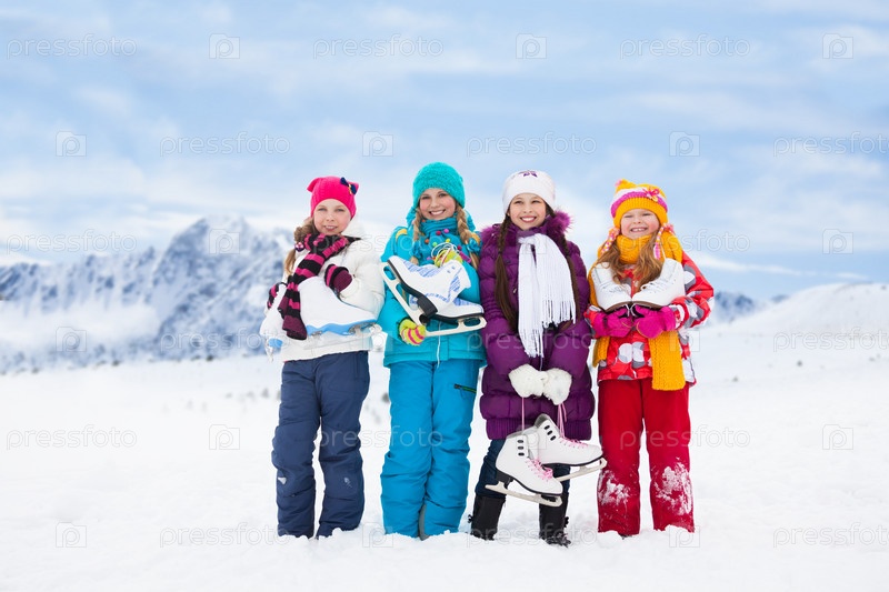 Группа детей зимой на природе