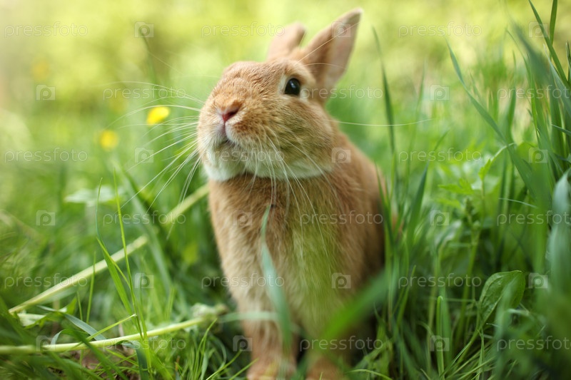 Коричневый кролик в зеленой траве