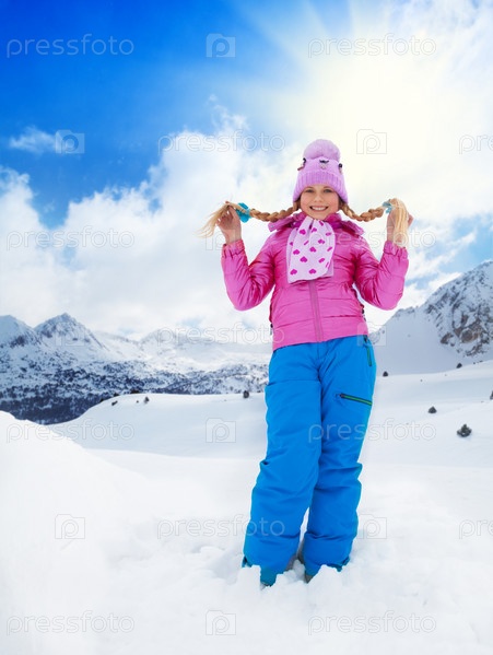 Счастливая девочка зимой на свежем воздухе