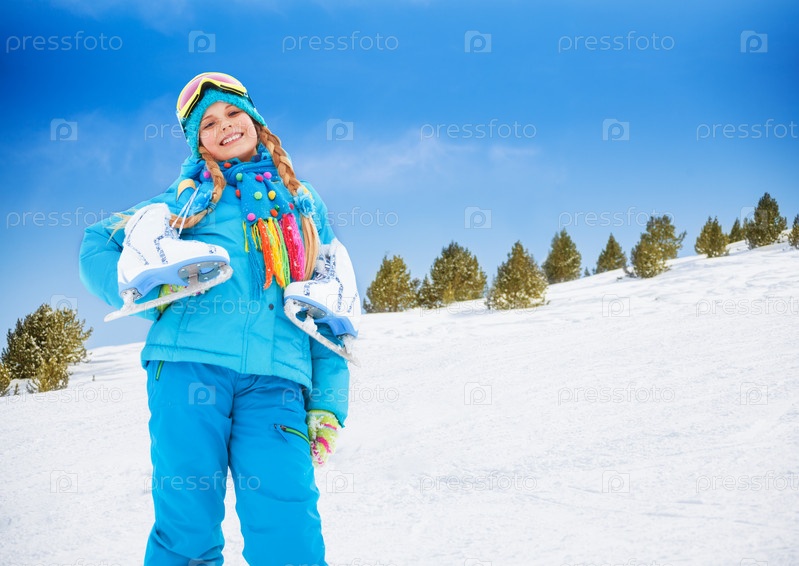 Счастливая девочка зимой на свежем воздухе
