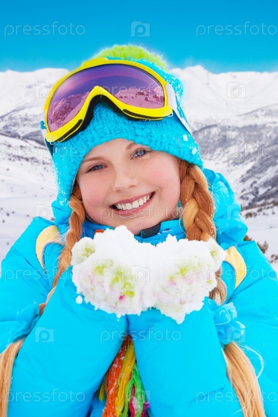 Счастливая девочка зимой на свежем воздухе