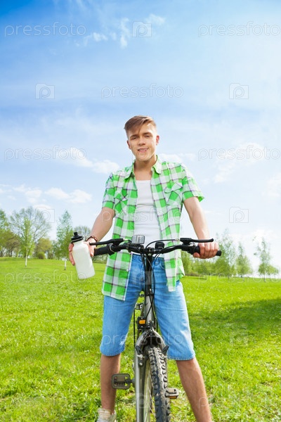 Молодой мужчина на велосипеде на природе