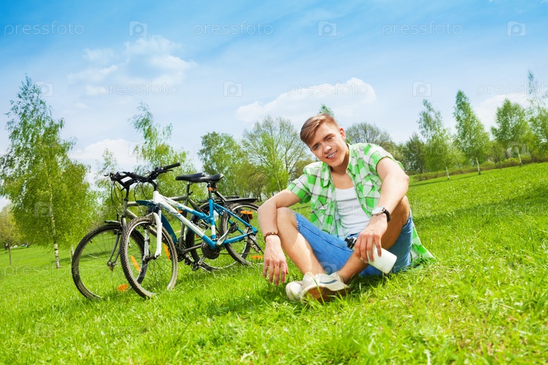Молодой мужчина на велосипеде на природе