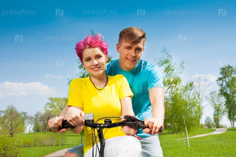Пара катается на велосипеде
