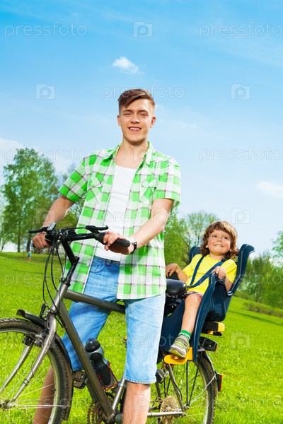 Молодые люди на велосипедах на природе