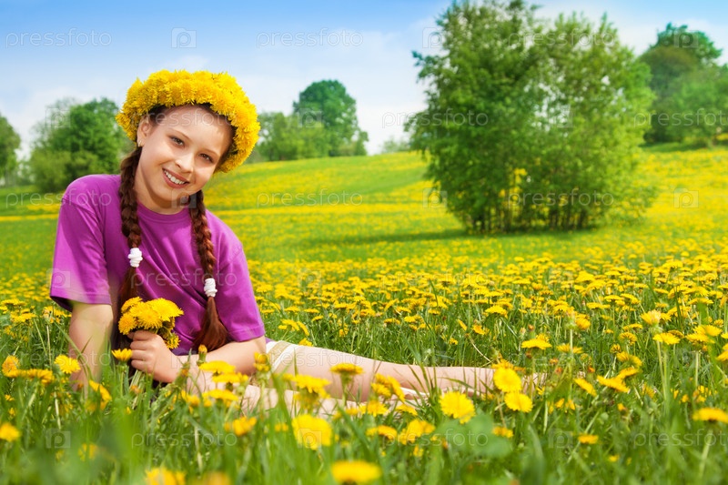 Девочка на поле с одуванчиками