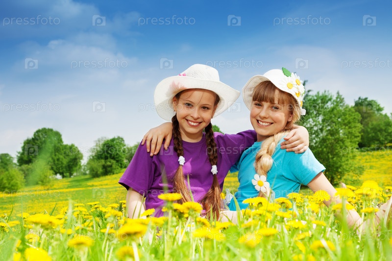 Девочки на цветущей поляне