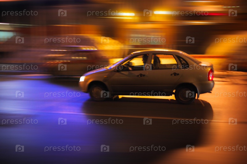 Современный автомобиль мчится по ночной улице