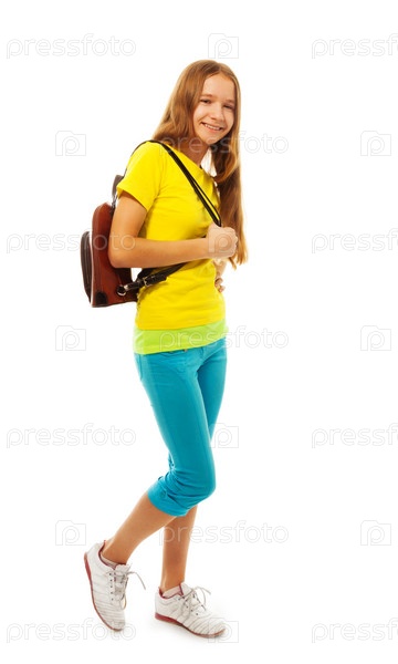 Школьница на белом фоне