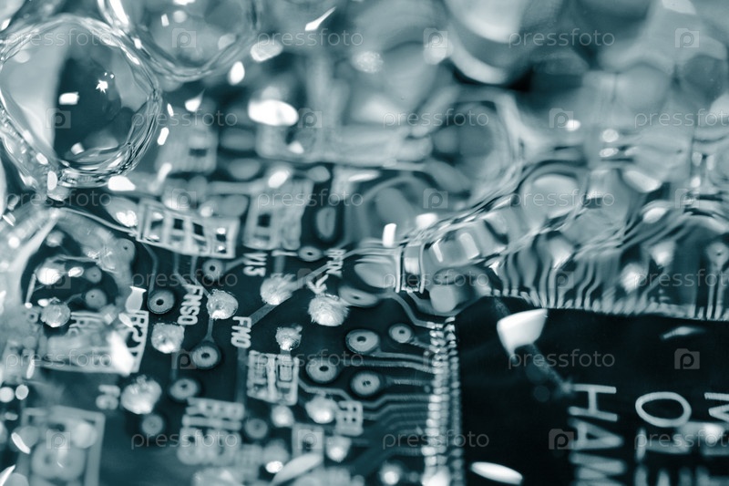 Электронная плата покрыта водой