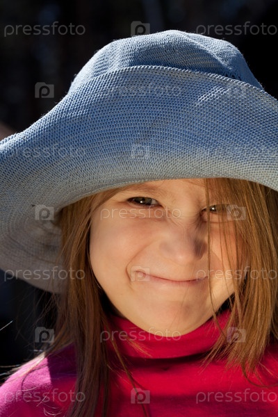 Портрет забавной девочки в синей шляпе