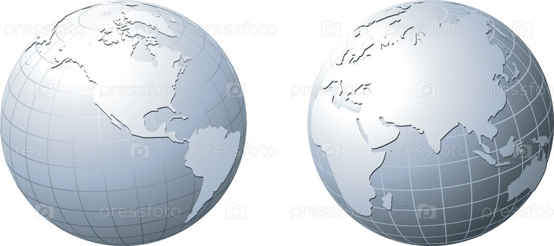 Два серых полушария Земли на белом фоне