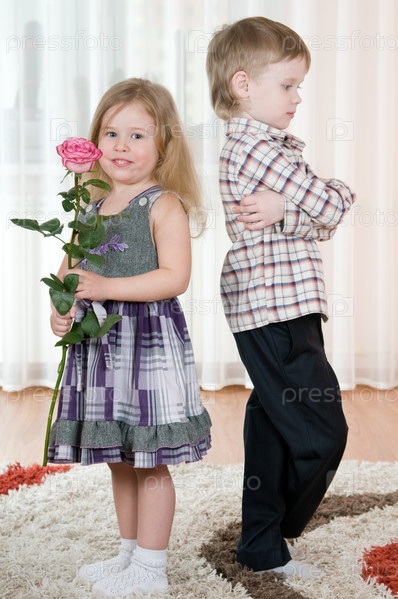 Маленький мальчик подарил девочке цветок