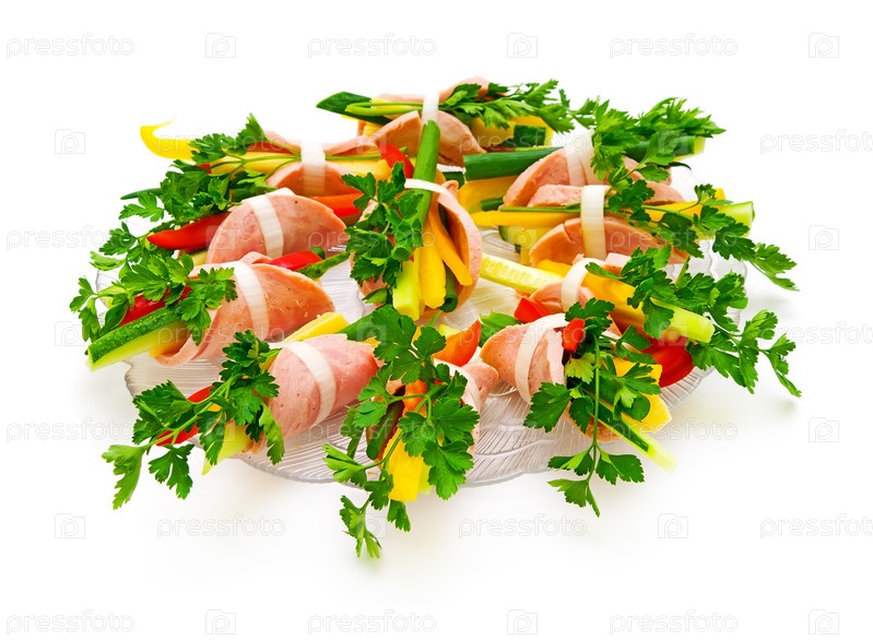 Рулеты из ветчины с зеленью и свежими овощами