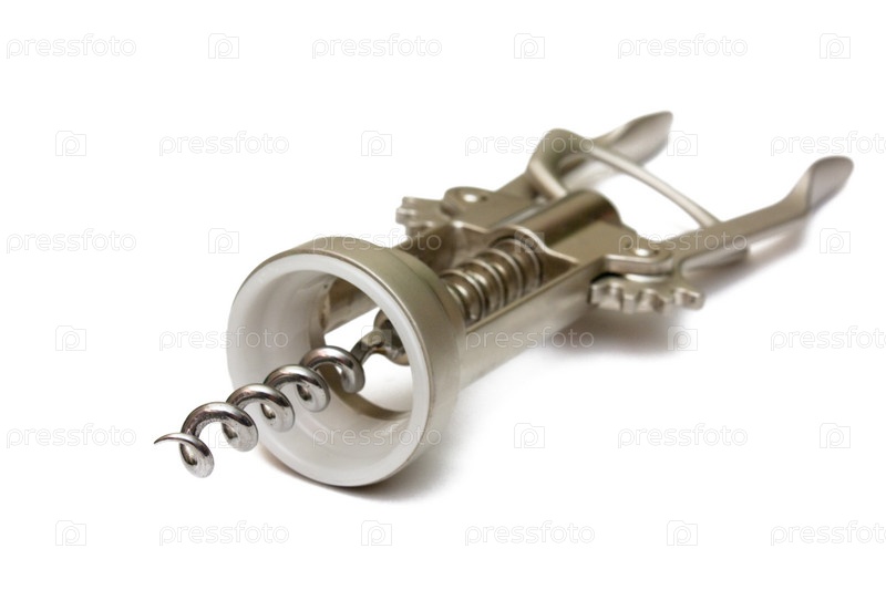Корковщик с извлеченной пробкой, изолированной на белом