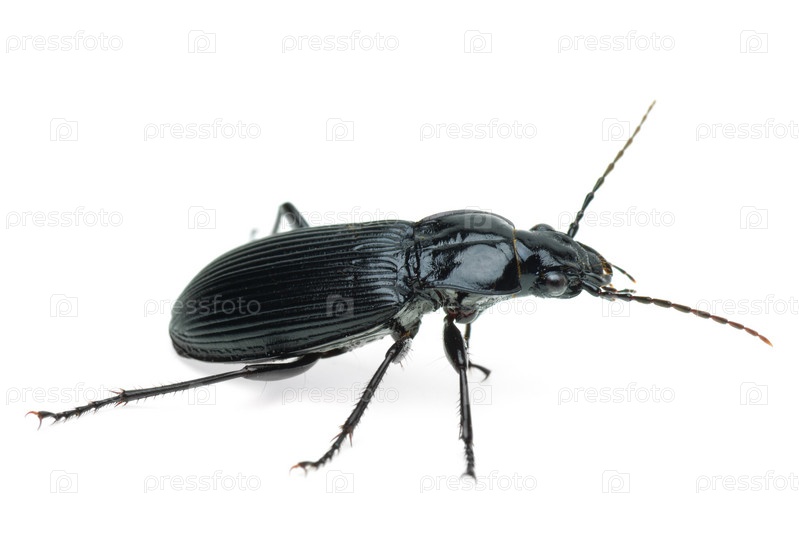 Черная жужелица на белом фоне