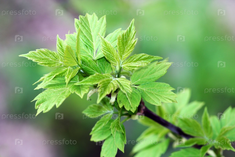 Зеленая ветка дерева с молодыми листьями