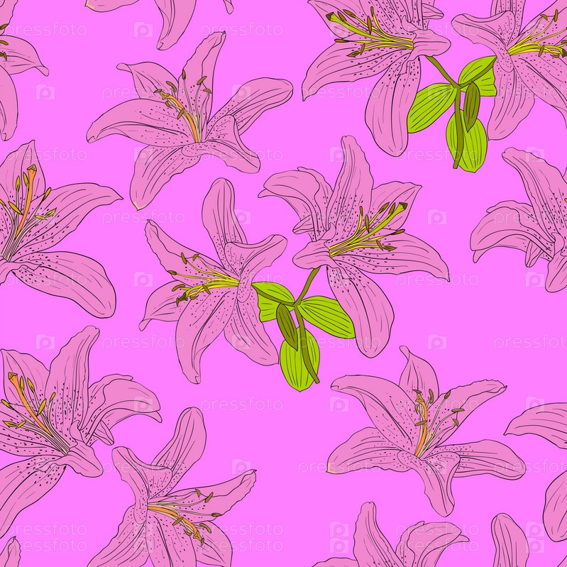 Бесшовный розовый фон с лилиями