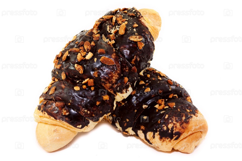 Шоколадные круассаны на белом фоне
