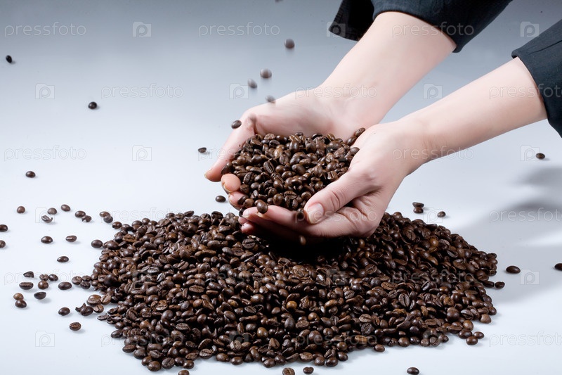 Женские руки и кофейные бобы