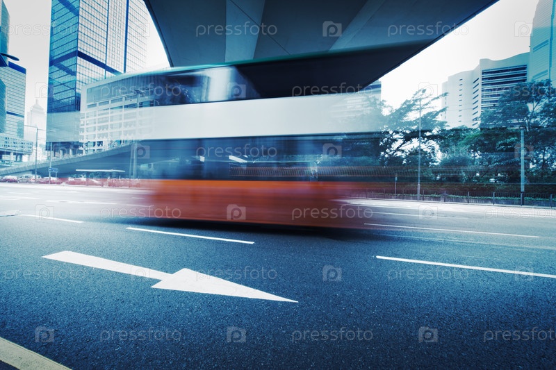 Автобус на городской улице, долгая выдержка