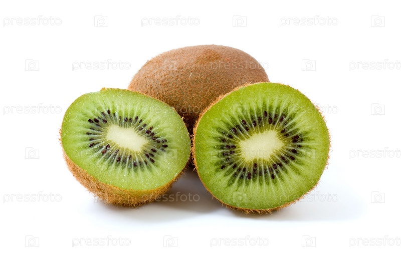 Целый и разрезанный напополам киви на белом фоне