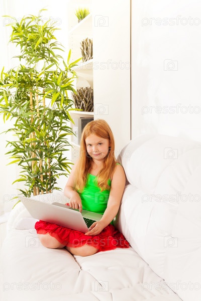 Симпатичная девочка с ноутбуком