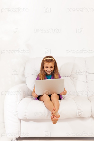 Девочка с ноутбуком на диване