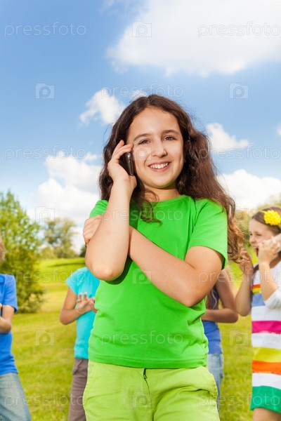 Девочка говорит по телефону