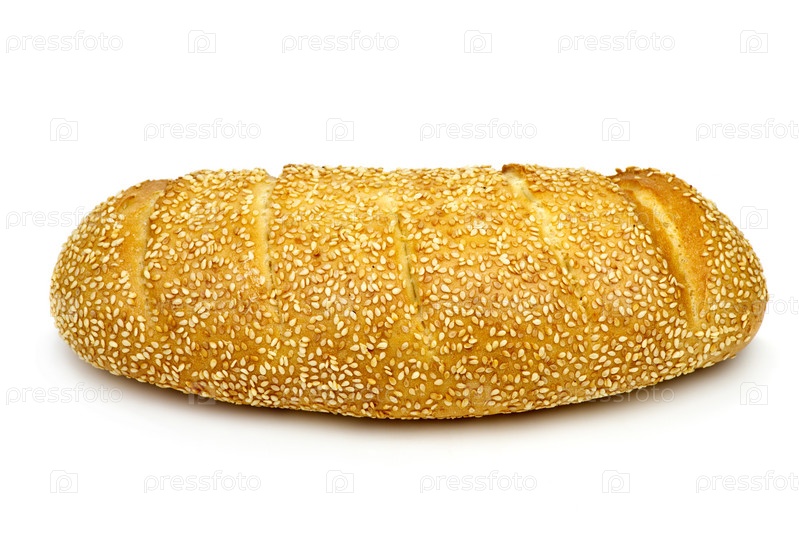 Батон с кунжутом на белом фоне