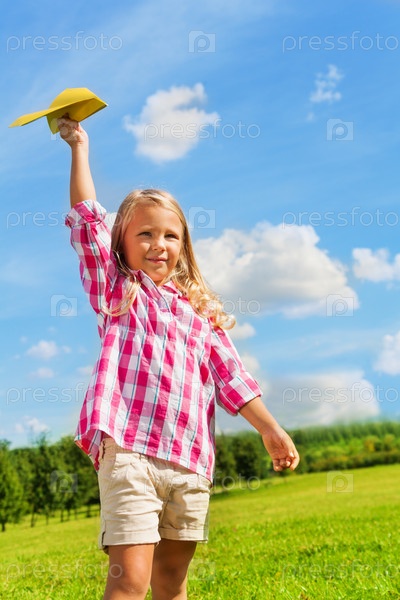 Счастливый ребенок с бумажным самолетом