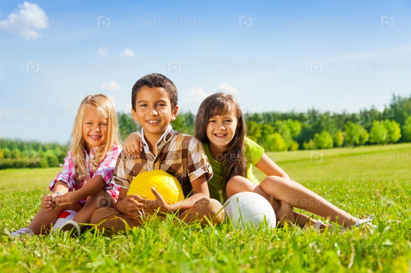 Трое детей с мячом
