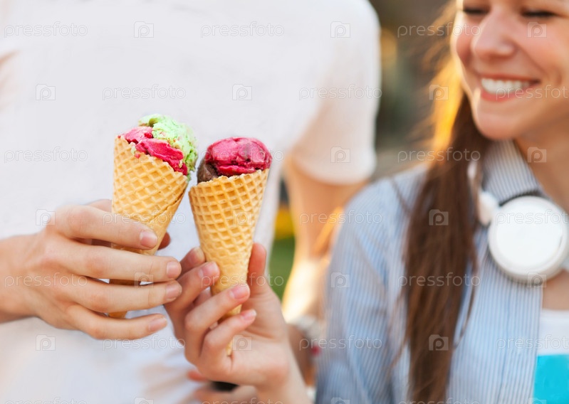 Пара подростков в городе с мороженым