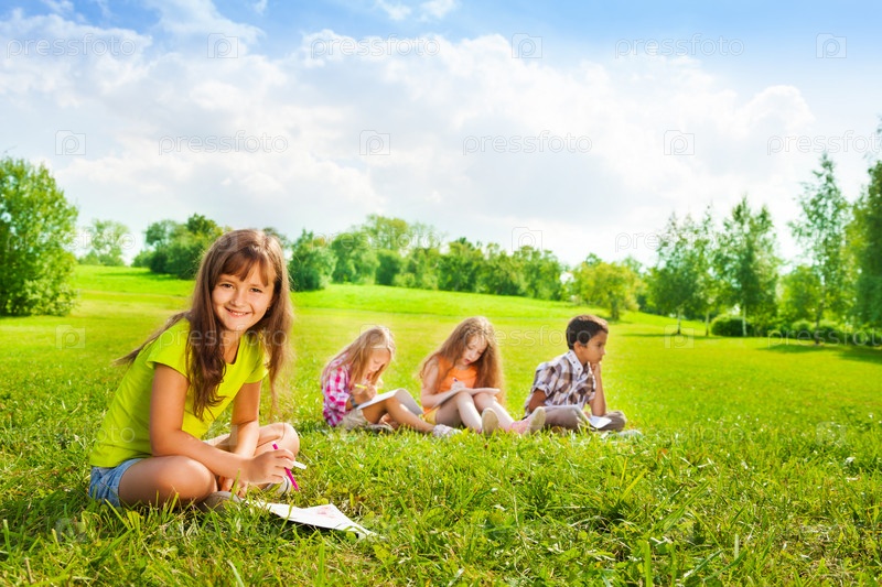 Дети рисуют в парке