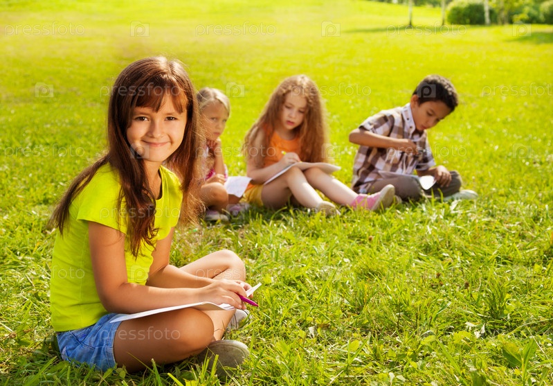 Дети рисуют в парке