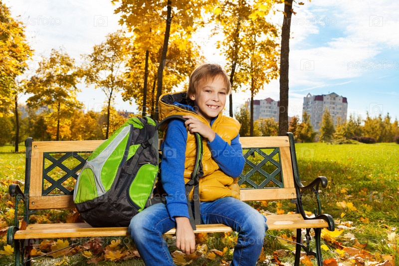 Мальчик с рюкзаком в парке