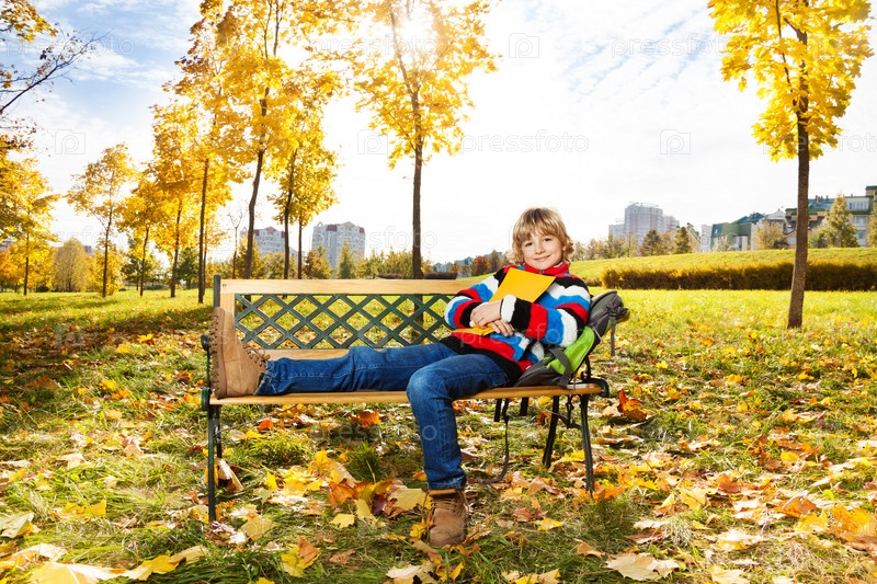 Мальчик с книгой в парке