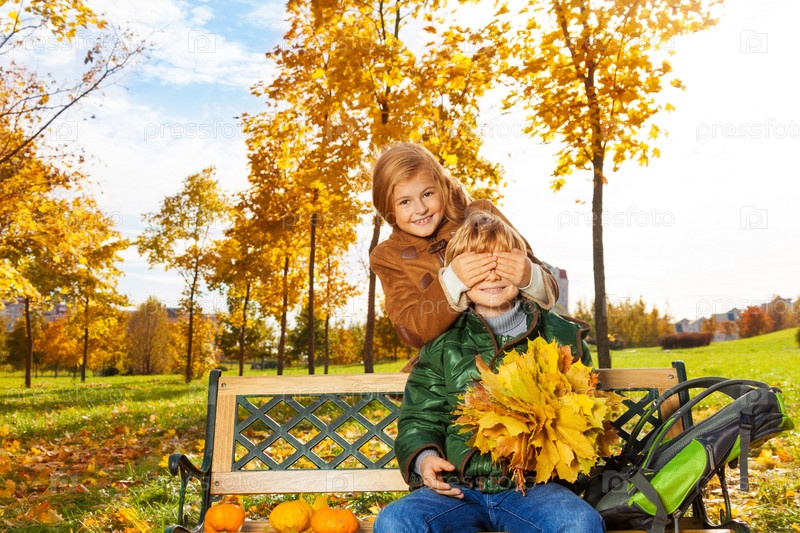 Мальчик и девочка в осеннем парке