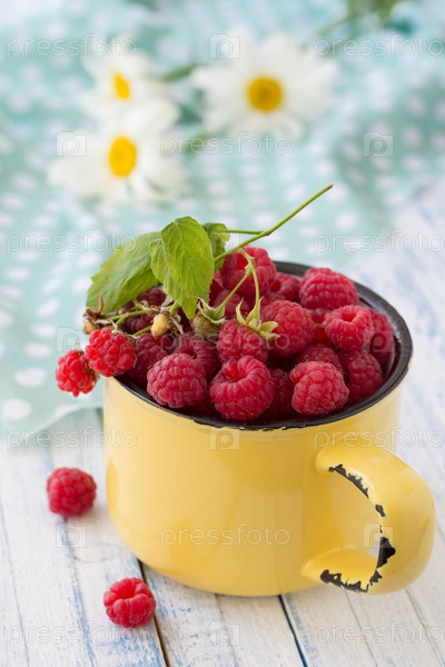 Свежая малина в кружке