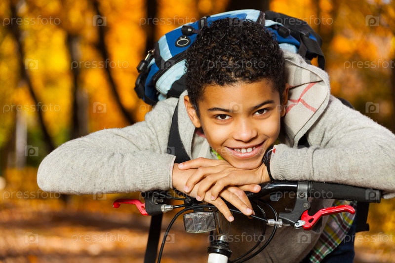 Мальчик на велосипеде в парке