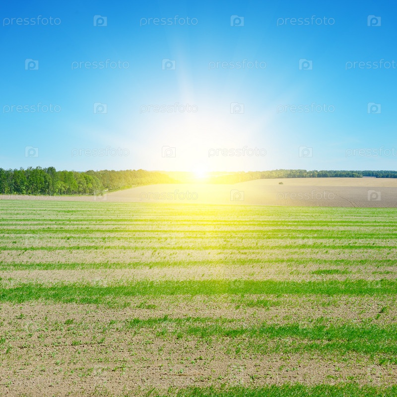 Поле, восход и голубое небо