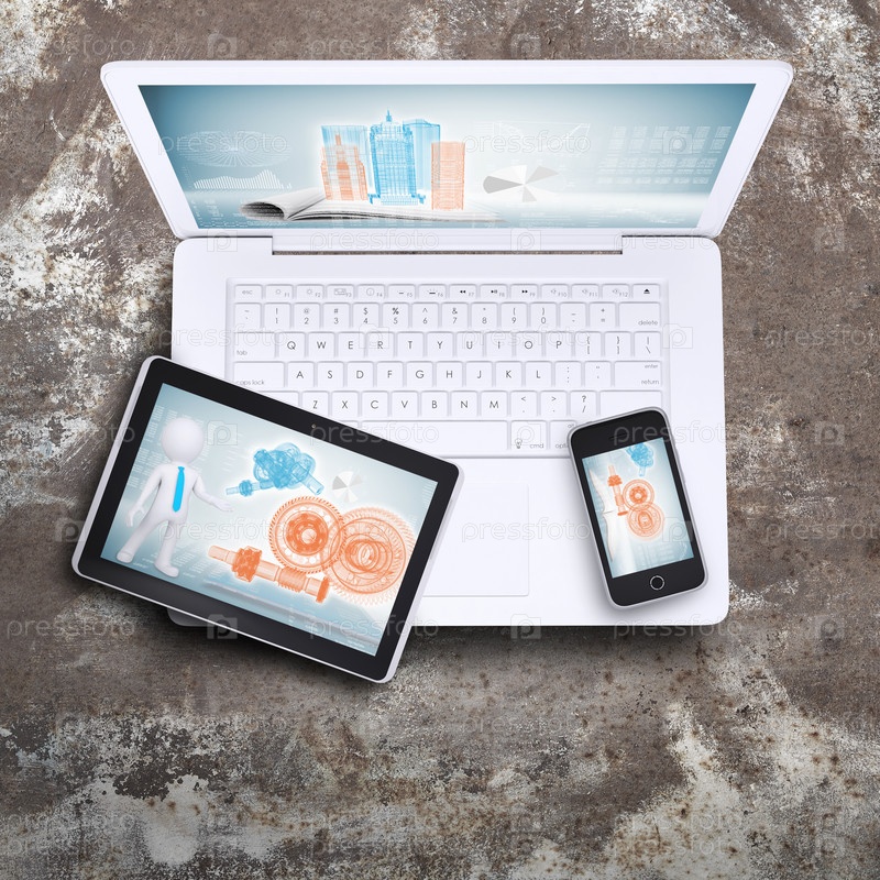 Ноутбук, планшетный компьютер и смартфон