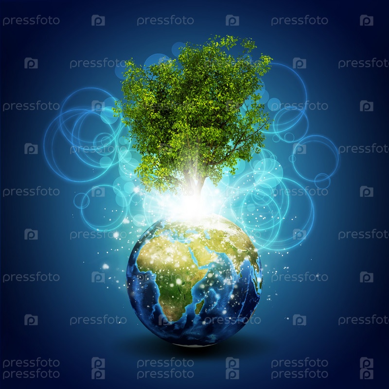 Земля с магическим зеленым деревом